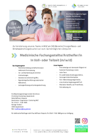 Zur Verstärkung unseres Teams im MVZ am CKQ (Bereiche Chirurgie/Neuro- und Wirbelsäulenchirurgie) suchen wir zum nächstmöglichen Zeitpunkt Medizinische Fachangestellte/Arzthelfer/in In Voll- oder…
