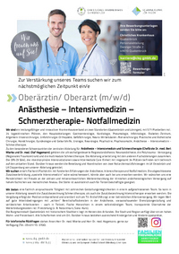 Zur Verstärkung unseres Teams suchen wir zum nächstmöglichen Zeitpunkt ein/e Oberärztin/ Oberarzt (m/w/d) Anästhesie – Intensivmedizin – Schmerztherapie- Notfallmedizin Wir sind ein leistungsfähiger…