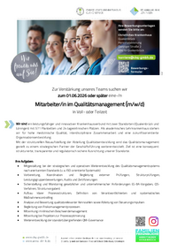 Zur Verstärkung unseres Teams suchen wir zum 01.06.2026 oder später eine-/n Mitarbeiter/in im Qualitätsmanagement (m/w/d) In Voll- oder Teilzeit Wir sind ein leistungsfähiger und innovativer…